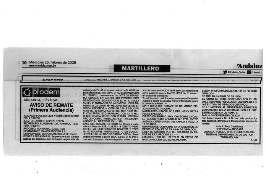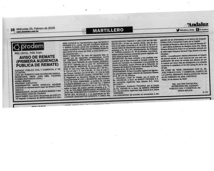 Aviso de Remate Tarija |